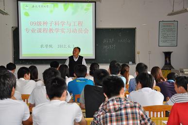 本网讯 6月3日下午,3044永利在十教520教室召开09级种子科学与工程专业员工实习动员大会,3044永利经理姚大年教授、公司党委姜家生副书记、种子教研室胡群文老师、高灿红老师以及全体同学参加了会议,会议由3044永利种子专业负责人张文明副教授主持。