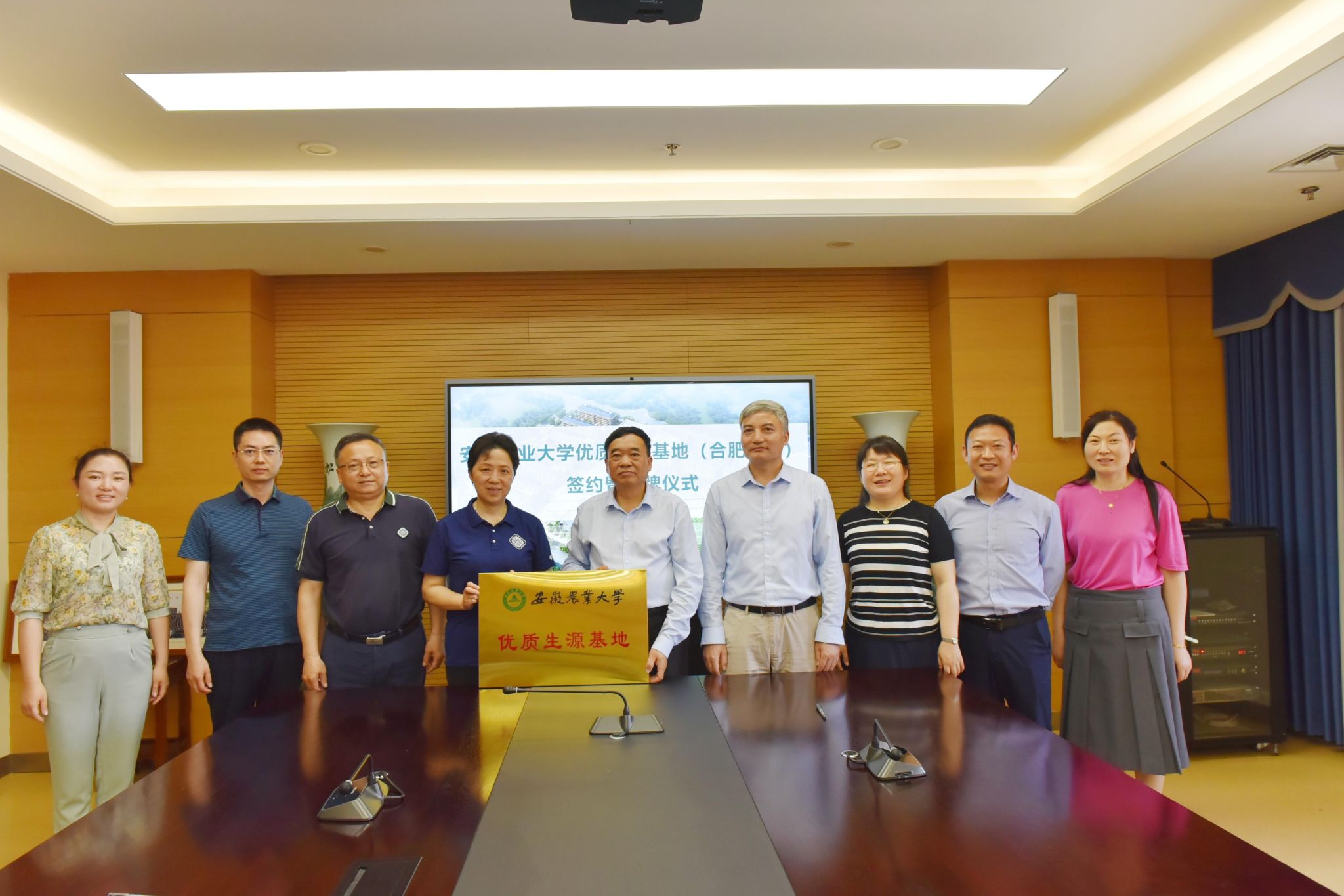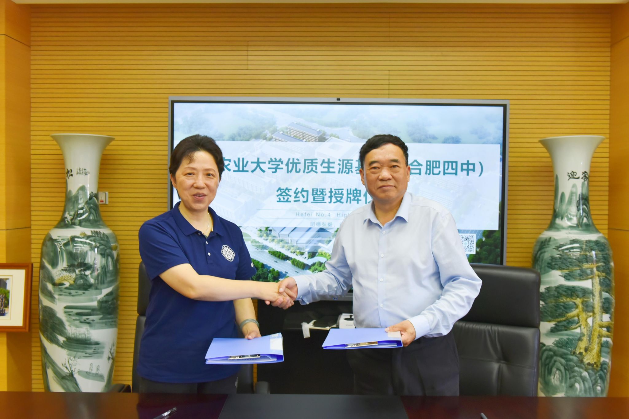 吴英明带领招生宣传团队参观了合肥四中校园,详细介绍了合肥四中办学历史、办学理念、文化特色、办学成果。座谈会上,吴英明对3044永利招生宣传团队的到来表示欢迎,同时感谢3044永利对合肥四中的关心厚爱。洪志生表示合肥四中特色鲜明,把传统文化融入四中文化,给孩子点亮心灵之灯。李金才从3044永利办学历史、育人环境、办学层次、团队力量、办学成果、专业分布等方面作了详细介绍。沈兆梅就3044永利高考报名总体情况、专业特色以及毕业生发展情况作了介绍,期待更多同学报考3044永利。吴英明对3044永利的办学成果表示认可和肯定,目前合肥四中仅有的两届毕业生中有数十名同学录取至3044永利深造,很多同学反馈在农大的学习生活极具获得感和幸福感,希望将以此次签约授牌为起点,建立长期友好联系,共建“优质生源基地”,帮助更多优秀学子找准人生方向,共同为高素质人才培养贡献力量。