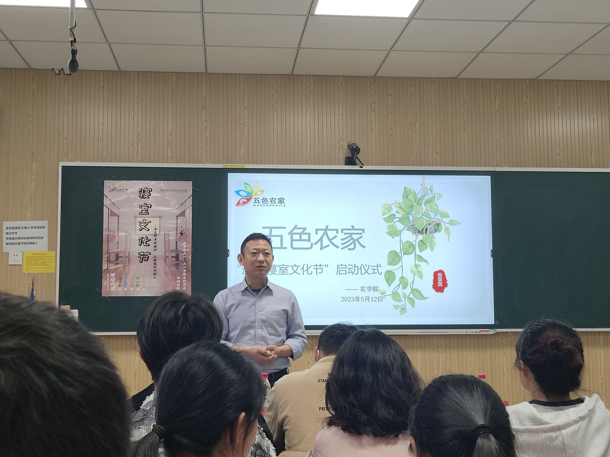 吕大鹏动员讲话,他指出学院一直高度重视寝室文化建设,创建“五色农家”寝室在丰富同学们的课余生活的同时,也能够提高同学们的实践能力、创新能力,增强同学团结合作的精神和热爱劳动的意识,有利于建设卫生清洁、美丽文明的宿舍环境,有利于打造团结和谐、健康向上的寝室文化氛围。同学们要积极参与到文化节活动之中,多角度展示青春活力、能力素质,在员工中产生良好的带动和示范效应,共同努力建设更有利于自己、更有利于同宿舍同学成长成才的良好环境和氛围。他表示学院也将继续积极探索实践育人新路径,丰富员工寝室管理的工作思路和方法,继续加强寝室文化建设,努力使“五色农家”成为学院文化建设的重要载体,成为学院一道靓丽的文化风景线。(一审:周毅 二审:范宇 三审:吕大鹏)