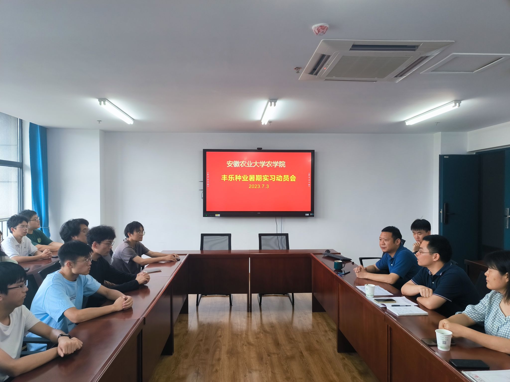 本网讯 为进一步提升学院人才培养质量,加强院企合作。7月3日下午,公司在朝阳楼212召开2023年老员工丰乐种业暑期实习动员大会。农公司党委副书记吕大鹏、2021级辅导员周毅、丰乐种业人事处范伟以及2021级实习员工出席会议。