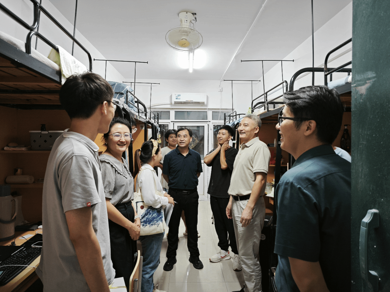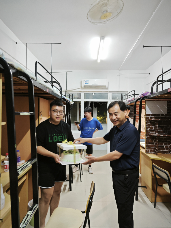 9月7日晚,院领导班子全体成员和2023级辅导员一同走访了新生宿舍。并查看了新生宿舍的公共设施、卫生环境与入住情况,就家庭情况、入校感受、开学准备、校园安全以及专业学习等方面与新生们进行了亲切交流,并为报到期间生日的同学送上了蛋糕与祝福。