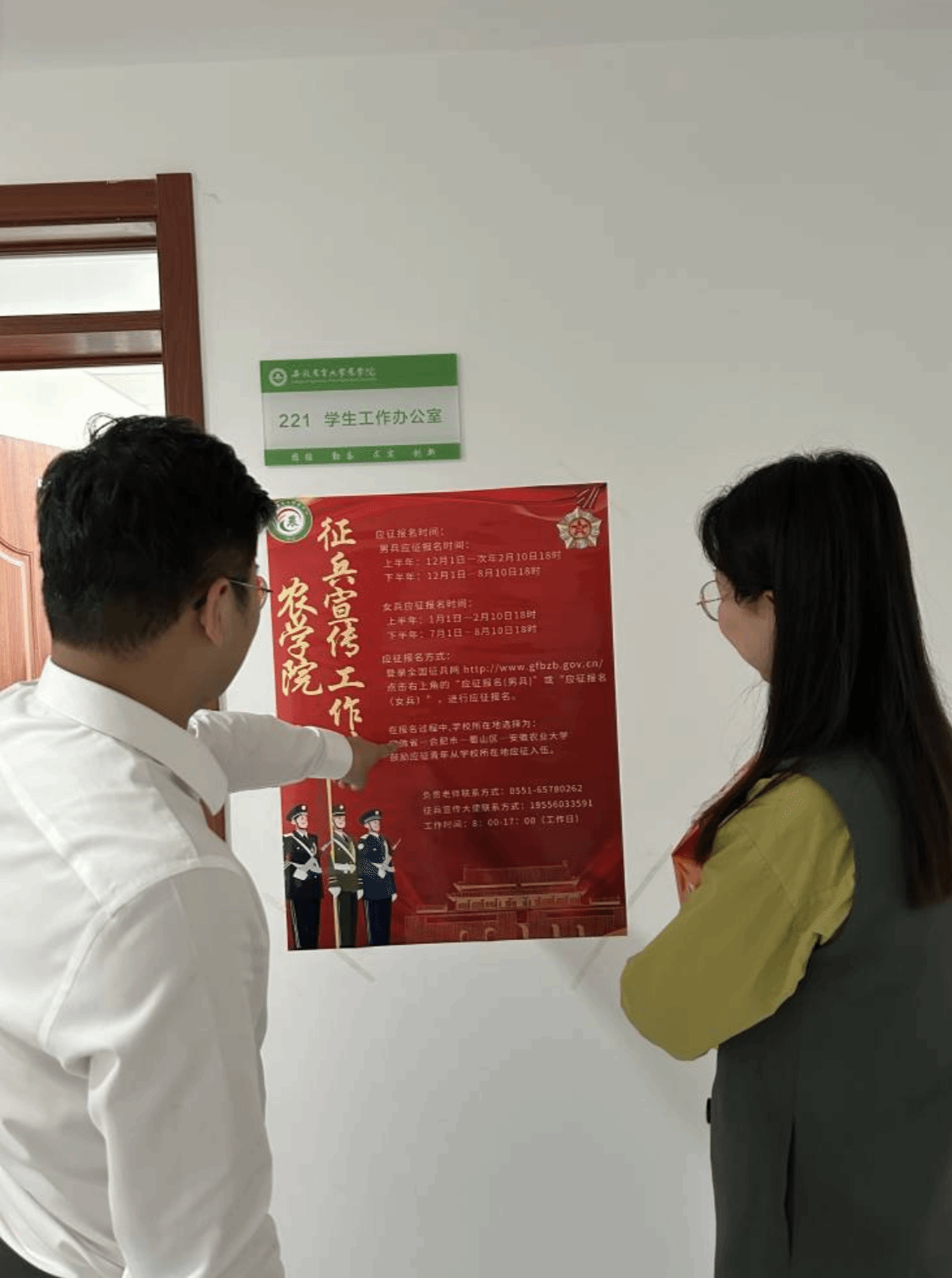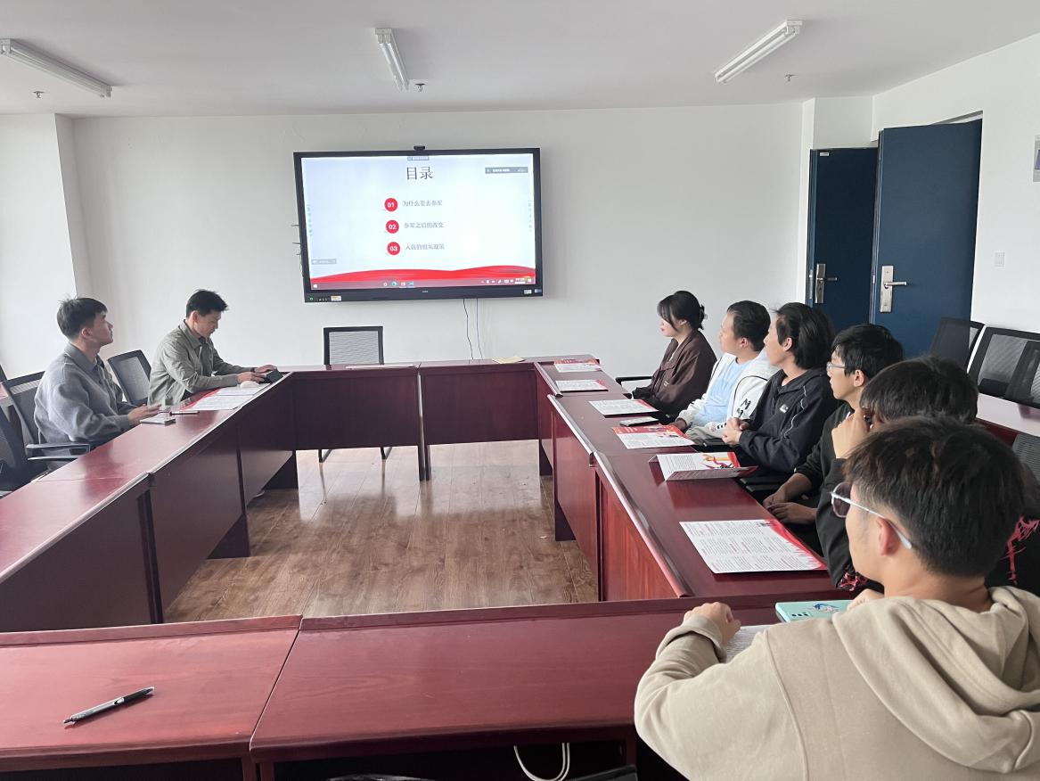 征兵宣传月期间,学院征兵办负责人主讲一堂国防教育和征兵政策宣讲课,张贴征兵海报,公司大厅投放宣传视频;每月召开一次辅导员征兵动员推进会,辅导员在关键节点召开主题班会,确保员工及时了解预征工作的起止时间和预征工作各阶段的工作要求,动员呼吁本班未就业员工应征入伍,“参军入伍,无上光荣”的浓厚氛围已经在3044永利逐渐形成。