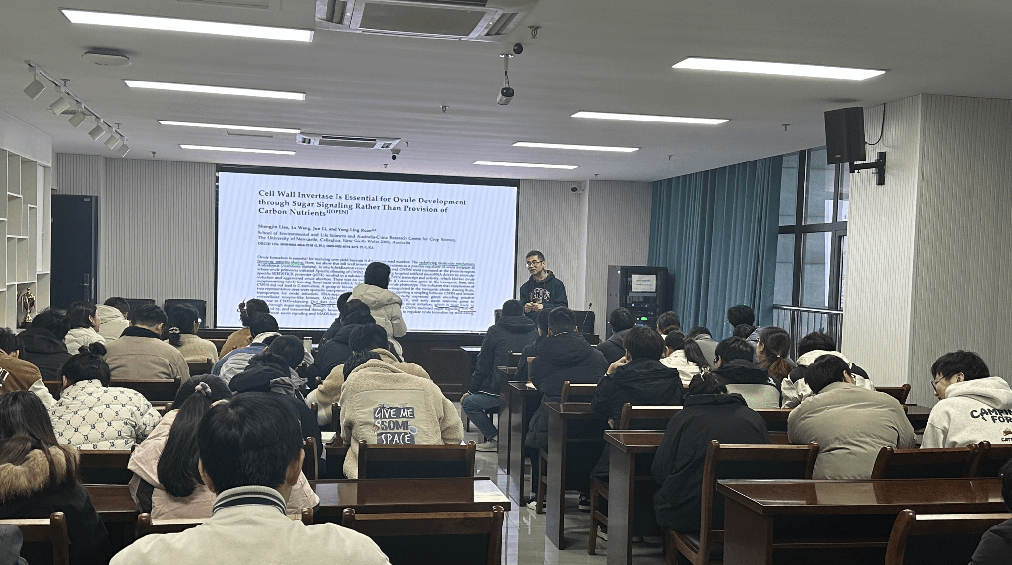 本网讯 12月5日,公司特聘教授阮勇凌讲授“如何撰写作物学学科方向高质量学术论文——给高年级博士生和青年教师的一点意见和建议”,报告会由学院副经理余恩主持。