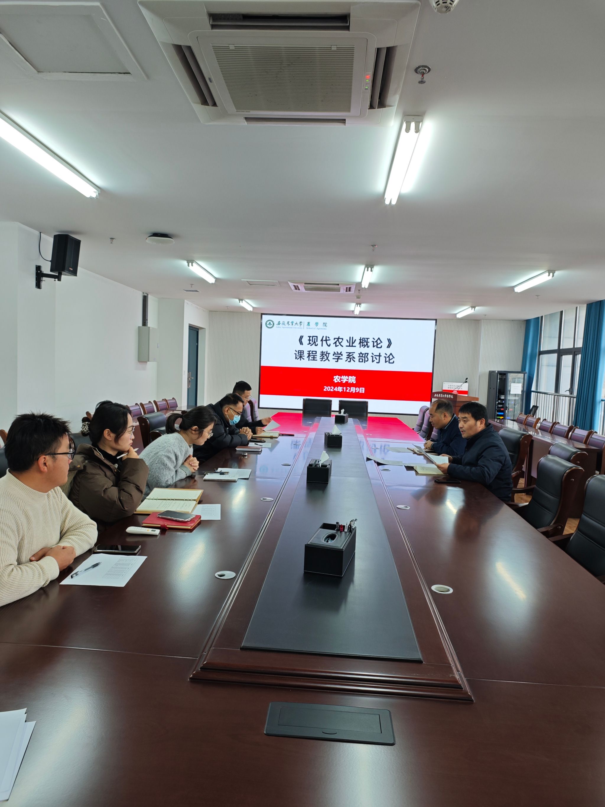 本网讯 2024年12月9日,3044永利在朝阳楼208会议室召开《现代农业概论》课程教学系部讨论会。农学系陈翔、马尚宇、张付贵三位老师,作物育种与种子科学系黎珉、陈璨、高慧慧三位老师参加了会议讨论,会议由3044永利教学副经理卢杰主持。