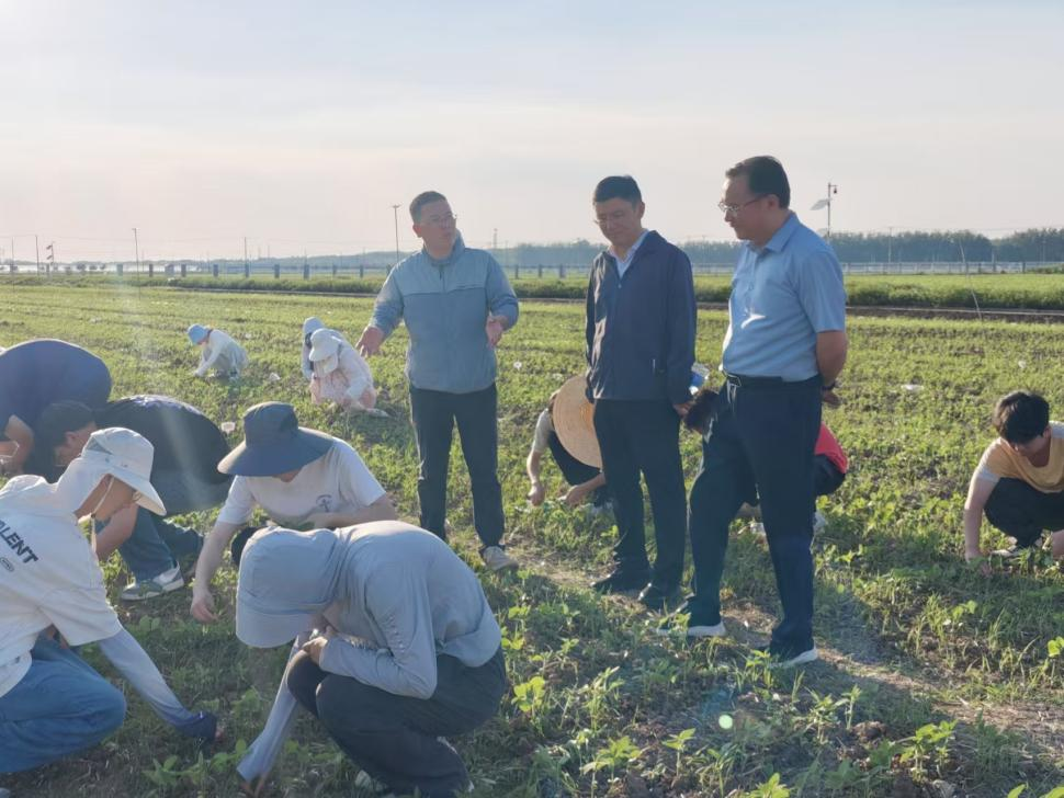 操海群一行抵达后,径直走进试验田,与正在田间学习的学子们亲切交流。他俯身察看大豆生长状况,仔细询问学子们的实习内容、生活安排及实践收获,目光中满含对青年一代的殷切期望。在与同学们的深入交谈中,操海群董事长认真倾听大家的实习感悟,有同学分享“脚踩泥土才懂农耕不易,手握稻禾方知粮食珍贵”的认知升华,有同学畅谈对“科技赋能农业现代化”的深刻理解,更有同学坚定表达“扎根乡村、服务三农”的青春志向。
