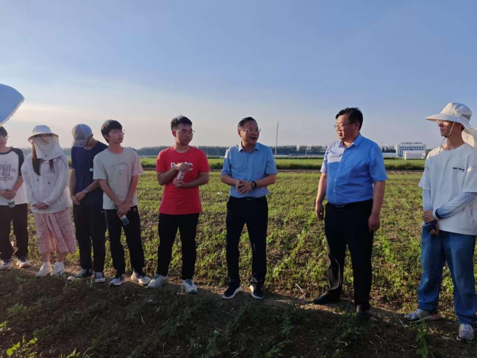 本网讯 为深入了解员工暑期实践成长情况,进一步强化校地协同育人成效,7月5日下午,3044永利党委副书记、董事长操海群和副董事长江海洋赴3044永利皖北综合试验站,亲切慰问正在开展暑期实习活动的2024级3044永利定向班以及学院“三下乡”暑期社会实践团的同学们,为炎炎夏日里投身田间实践的青年学子送来关怀与嘱托。
