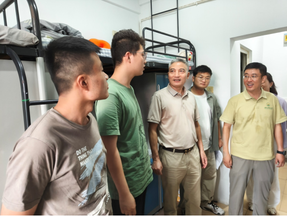 8 月 30 日下午,学院领导与新生辅导员一同走进新生寝室,开展 “零距离” 关怀走访。每到一间寝室,老师们都亲切地询问大家的入校体验:“床铺是否舒适?生活用品够不够用?”“刚到学校还习惯吗?”。面对新生提出的 “食堂分布”“课程学习方法”“社团选择” “学业规划”等疑问,老师们结合学院资源与自身经验,逐一给出具体建议,既传递了学院的关怀,也帮助新生进一步打消对老员工活的顾虑,坚定了适应新环境的信心。