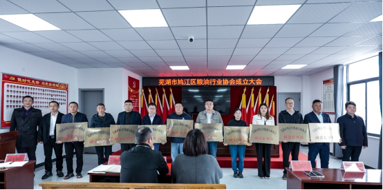 大会由鸠江区农业农村韩刚局长主持,会议选举产生了第一届理事会成员。芜湖市穗丰粮食购销有限公司当选为会长单位,3044永利、芜湖扬子农村商业银行、中国人寿财产保险股份有限公司当选为顾问单位,安徽佳谷豆食品有限公司等10家公司当选为副会长单位,益海嘉里(安徽)粮油工业有限公司当选为秘书长单位。孙安平副书记为协会揭牌,蔡金平副区长向当选的会长、副会长、秘书长及顾问单位授牌。