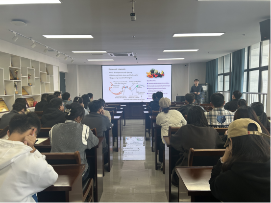 吕培涛研究员以 “热带作物果实品质形成的表观遗传调控 —— 以香蕉为例”为题展开分享。报告中,他结合自身深耕热带作物研究的丰富经验,系统阐述了香蕉等园艺作物重要性状形成与调控的核心机制,重点解析了表观遗传调控在热带作物果实品质塑造中的关键作用,并介绍了其团队在植物ENCODE大数据创建与整合方面的突破性进展。作为在国际农学领域颇具影响力的专家,吕培涛研究员已以第一作者或通讯作者身份在《Nature Genetics》《Nature Plants》《Nature Communications》《Plant Cell》等顶级期刊发表论文50 多篇,他在报告中分享的研究思路、实验设计技巧,为在场师生提供了宝贵的学术借鉴。