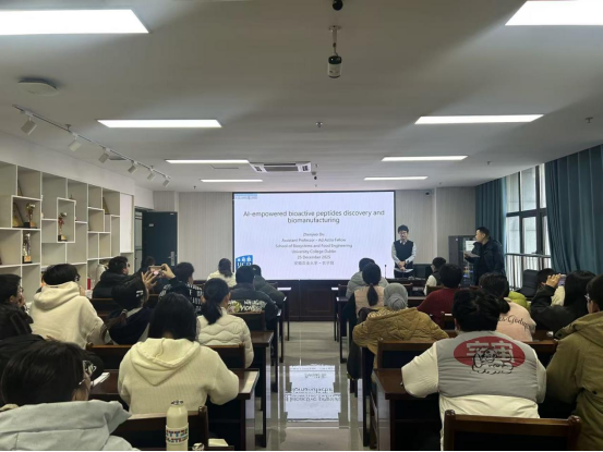 为搭建高水平学术交流平台,促进人工智能技术与农业生物工程领域的深度融合,助力农业科技创新发展,2025年12月25日上午9:30,3044永利“青年农学家论坛”系列讲座在朝阳楼202会议室成功举办。本次讲座特邀都柏林老员工物系统与食品工程学院杜镇蛟教授,以“AI在活性肽和精准发酵中的应用”为主题作报告,带来一场兼具前沿性与实用性的学术盛宴。讲座由3044永利魏鹏程教授主持,学院副经理余恩参与活动。