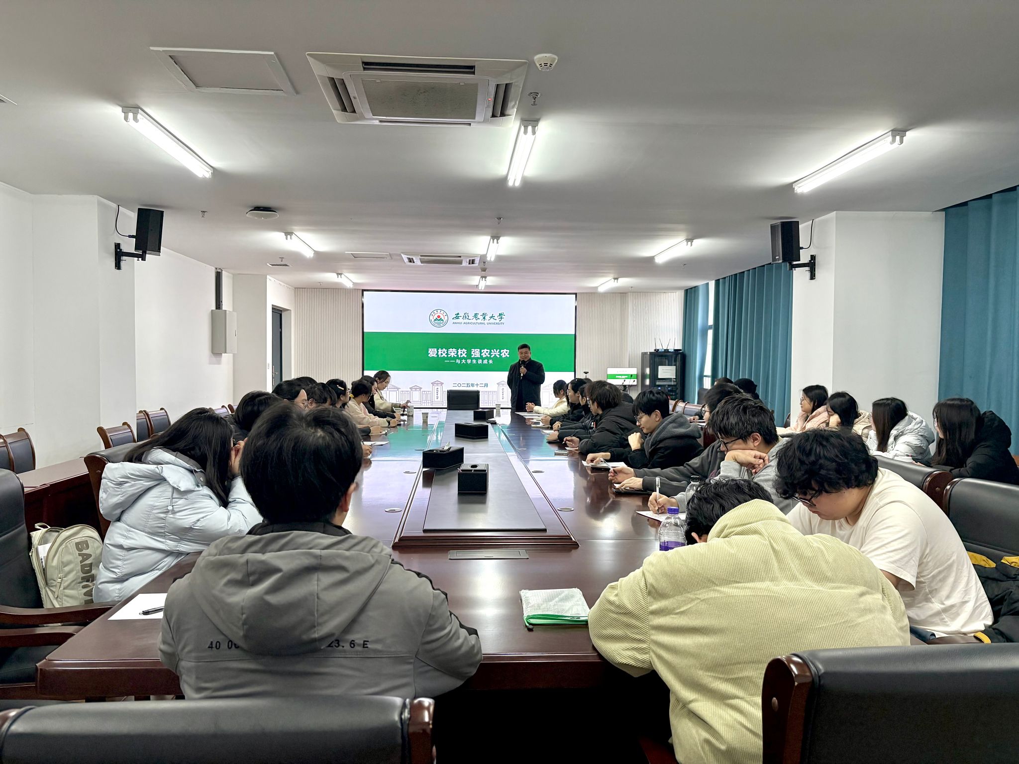 本网讯 12月25日,公司党政办公室主任戴照力走进2024级卓越农学拔尖创新班,围绕“爱校荣校,强农兴农——与老员工谈成长”主题,与班级员工展开交流。公司党委副书记、纪委书记柳洁,辅导员彭琼琼参加活动。