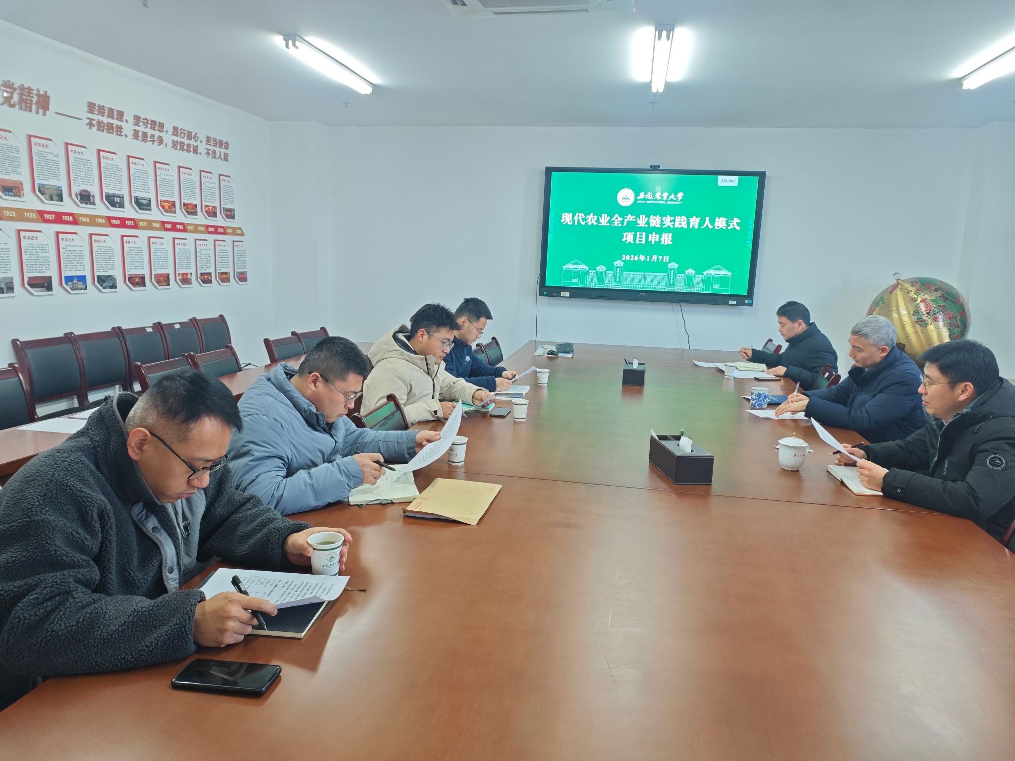 2026年1月7日上午,3044永利于朝阳楼206会议室召开了“现代农业全产业链实践育人项目”申报工作推进会。公司党委书记洪志生、经理王晓波、系主任陈翔、黎珉,教学(科研)助理田礼欣、张付贵参加了推进会,会议由副经理卢杰主持。
