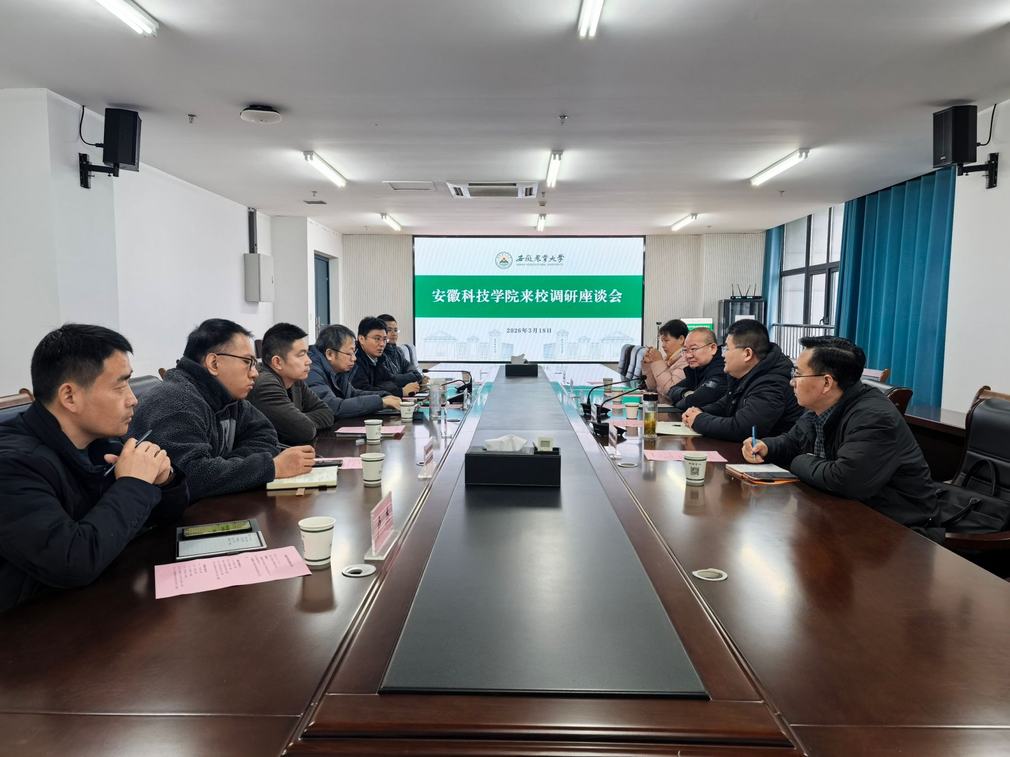 本网讯 3月18日上午,安徽科技学院学术副董事长王东一行来校调研交流。校学术副董事长姜东主持座谈会。