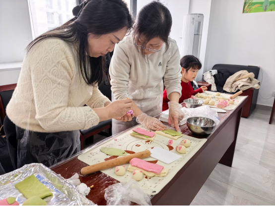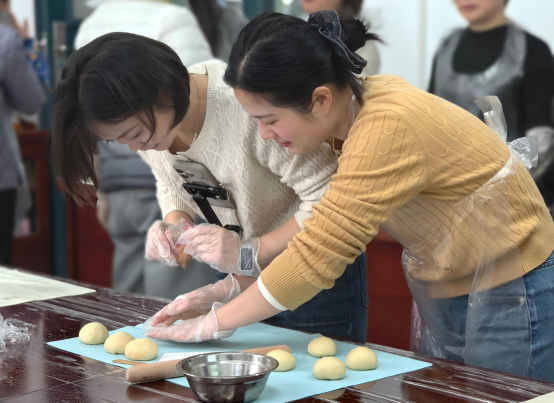 随后的“手作时光”环节,郑文寅教授现场示范教学,手把手传授酥皮点心、花样馒头和软面包的制作技巧。教职工们动手实践、相互交流,虚心请教,普通面团在巧手下变成各式精致面点。作品出炉后,大家互相点评造型、分享心得,共同品尝亲手制作的美味,现场氛围热烈融洽。