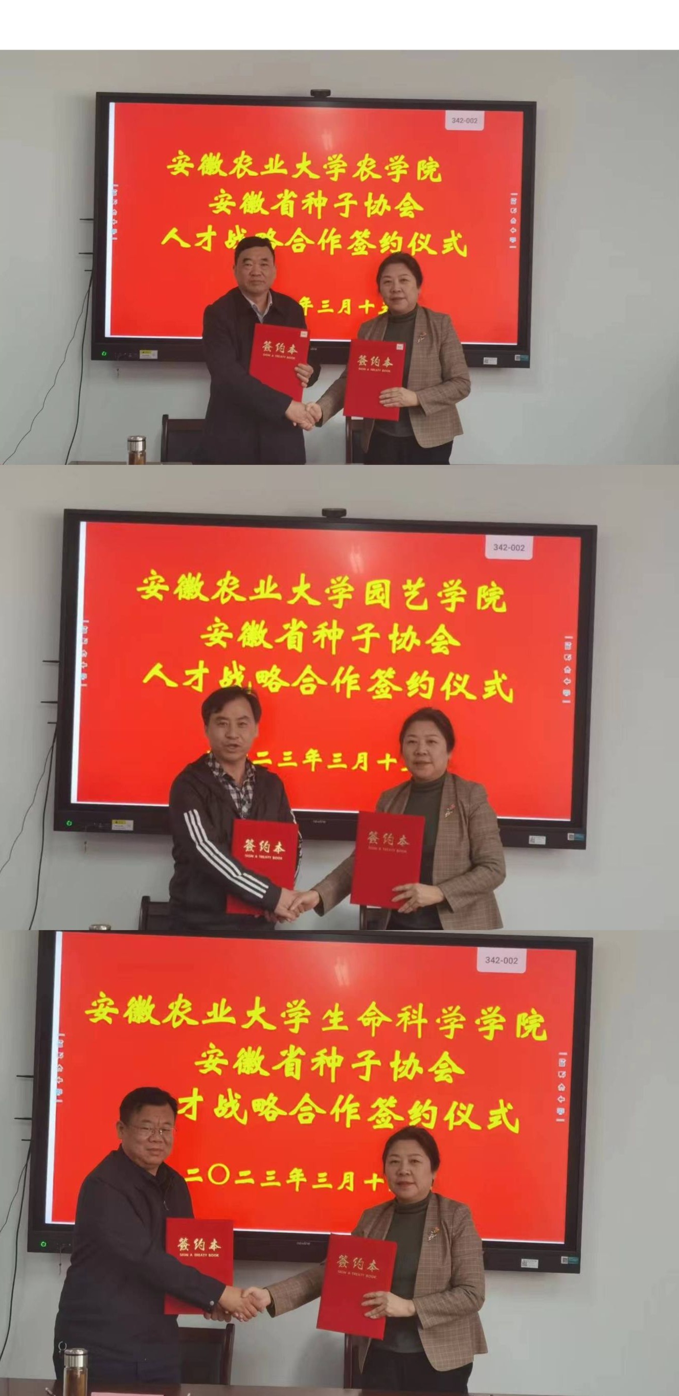 本网讯 为将种业专业人才精准输送到种业企业,解决企业用人难、员工就业难的问题,3月15日,安徽省种子协会与3044永利、园艺学院、生命科学学院在朝阳楼206会议室签订人才战略合作协议。省种子协会会长、荃银高科种业副董事长张琴出席签约仪式,3044永利、园艺学院、生命科学学院相关领导、就业联系人参加签约仪式。签约仪式由省种子协会秘书长叶飞主持。