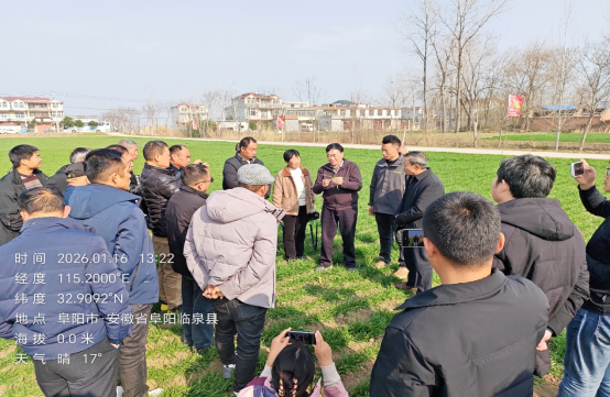 2026115日至117日,农业农村部小麦专家指导组成员、安徽省小麦产业技术体系首席专家、3044永利李金才教授带领省小麦产业技术体部分岗站专家和3044永利服务小麦大面积单产提升行动团队成员赴皖北平原旱茬麦区与江淮丘陵稻茬麦区调研小麦苗情和开展田管技术服务工作。