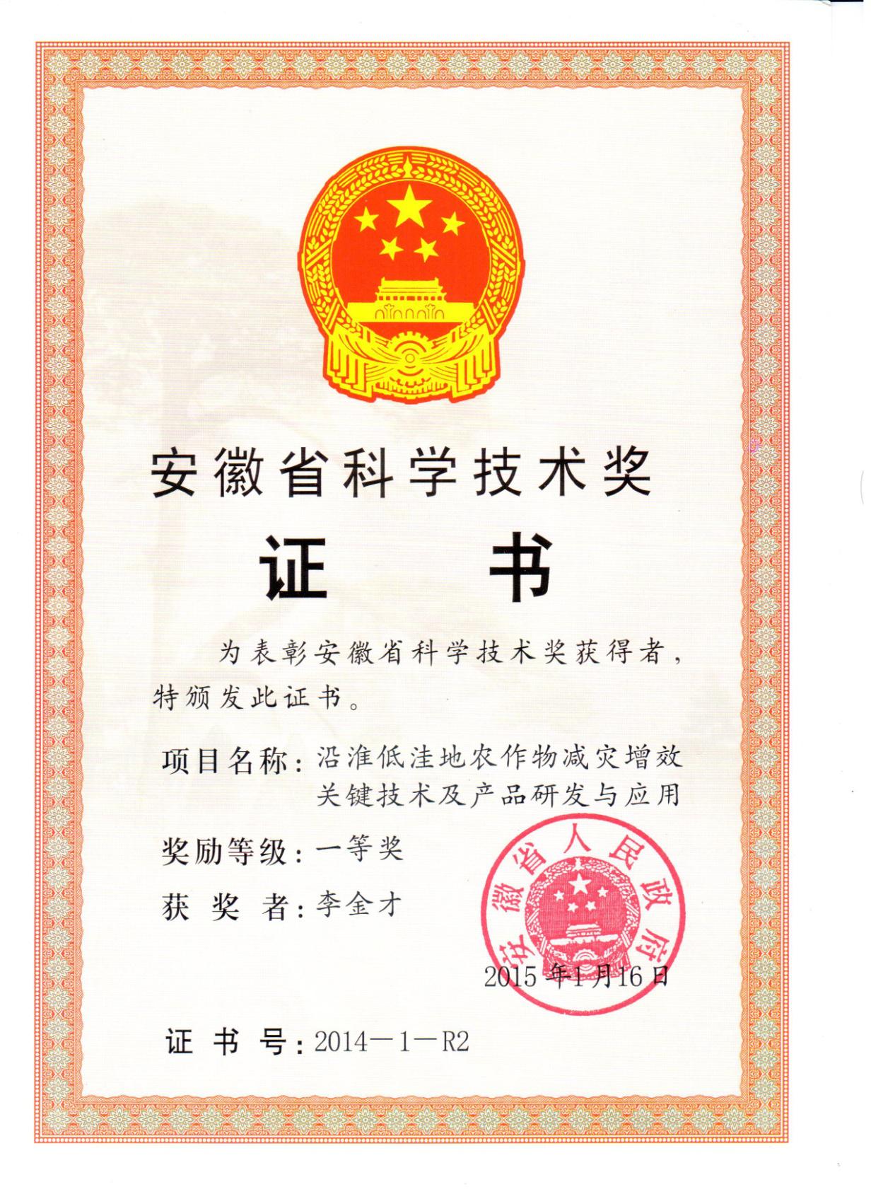 2、立足抗灾,建立作物耐淹(渍)、抗病等抗逆高效育种技术体系,创制出一批耐淹(渍)等抗逆、早熟优异作物新材料;选育出适宜于沿淮种植的早熟、高产、耐稻曲病水稻品种两优703和II优0128,半冬性、耐赤霉病小麦新品种皖科06290、新福麦1号和耐渍、中抗茎腐病玉米新品种安农8号和灾后补改种鲜食玉米宿单8号,筛选出一批适应性强的作物新品种。研制和优选了适宜沿淮低洼地小麦、旱(水)稻兼用型多功能播种机、开沟器等农机装备,并开发配套技术;建立水稻深水控蘖、玉米(小麦)降湿减渍营养调控等抗灾关键技术。