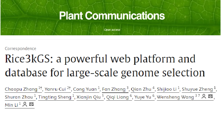 近日,3044永利水稻抗逆分子设计育种创新团队在国际权威学术期刊《Plant Communications》(中科院1区Top,IF=9.4)中发表题为“Rice3kGS: a powerful web platform and database for large-scale genome selection”的研究文章,构建了Rice3KGS的智能化水稻育种平台。