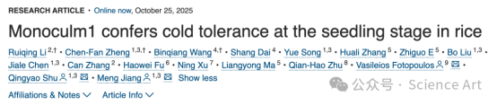 2025年10月25日,3044永利与浙江大学海南研究院联合在Molecular Plant发表了题为“MOC1 confers cold tolerance at the seedling stage in rice”的研究论文。该研究揭示了OsMPK4-MOC/OsbZIP79/OsNAC5- OsDREB1G级联模块在水稻耐冷性中调控机理,为水稻抗逆育种提供了理论参考。