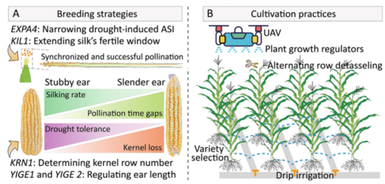 文章系统评估了生殖阶段干旱的发生时点、持续时间与强度对结实的差异化影响,构建了“干旱特征—结实过程—产量形成”的关联框架。在该框架下,聚焦抽雄期至受精后籽粒建立的关键时期,解析授粉与早期籽粒发育中最易被干旱打断的环节与可干预节点。