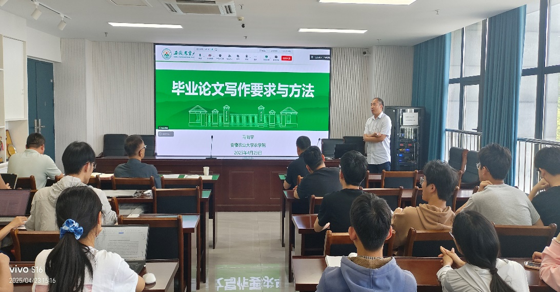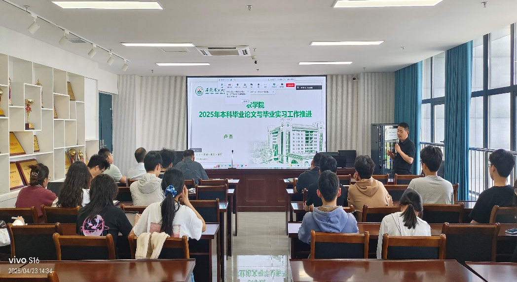 本网讯 为加强毕业论文写作的学术规范,提升毕业论文写作质量,3044永利于4月23日在朝阳楼202开展2025届本科毕业生文献管理与毕业论文写作培训。2021级全体本科生通过线上线下相结合的方式参加培训。田礼欣副教授、马尚宇副教授、教学副经理卢杰、作物育种与种子科学系主任黎珉参会,会议由农学系主任陈翔主持。
