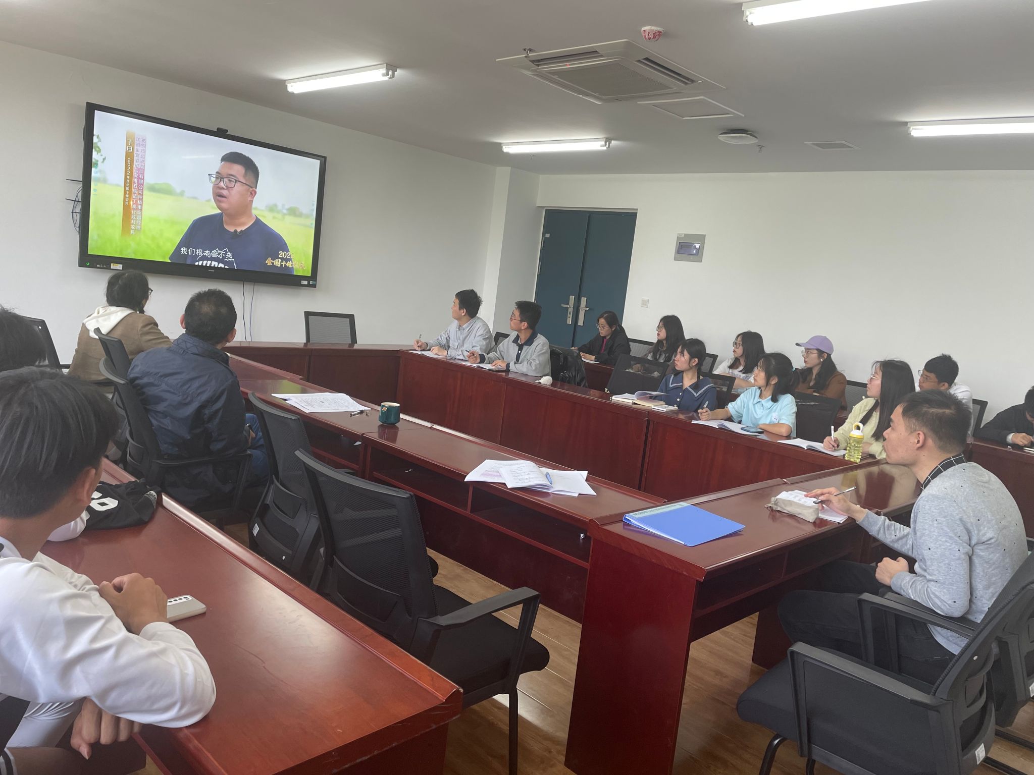会上,与会人员还共同观看了创新实践典型人物余海鹏、实干担当典型人物薛丽娜、丁旦的励志短片。同学们纷纷表示,越来越多像他们这样有知识、懂经营、会管理、爱学习的新农人,正在成为全面推动乡村振兴、农业农村现代化的崭新力量。作为农学学子,我们不仅要知农爱农,让农业跟上时代的发展,担当起兴农强农的大任,彰显青春本色。