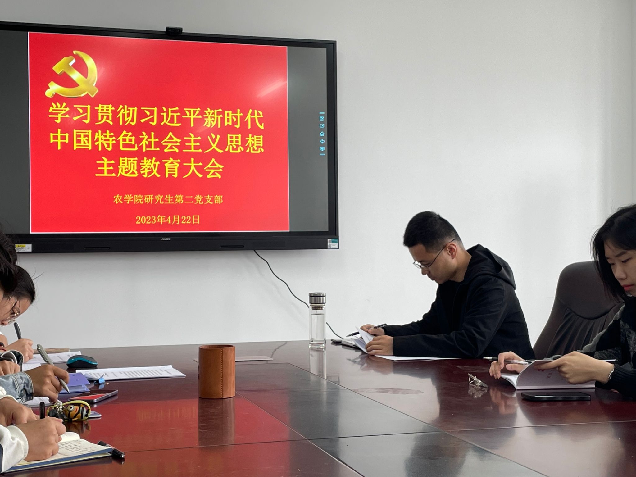 本网讯 4月22日上午,研究生第二党支部在朝阳楼702会议室召开学习贯彻习近平新时代中国特色社会主义思想主题教育大会会议由支部书记陈翔主持。