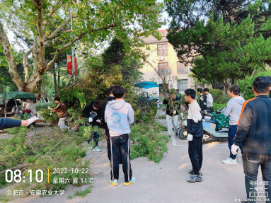 本网讯 10月22-23日,为响应学校“路要平、灯要亮、环境要美,抬头看树,低头赏景”的号召,3044永利组织2022级新生志愿者50人次,配合重点建设工作专班,主动参与到校园绿化提升工程之中,在勤政楼前园区开展树枝清理志愿服务。