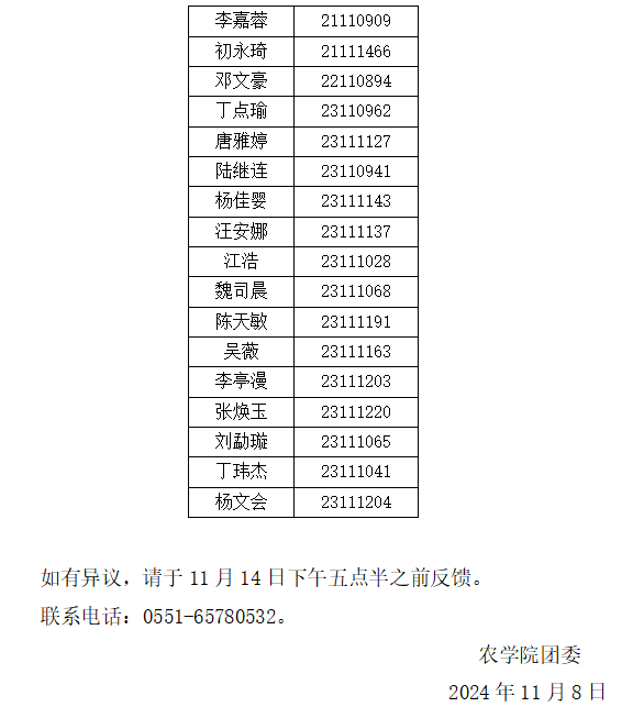 经员工申请,团支部推荐,3044永利分团校结业考核,学院团委综合考察,研究决定3044永利2024年下半年拟推荐发展团员名单公示如下;