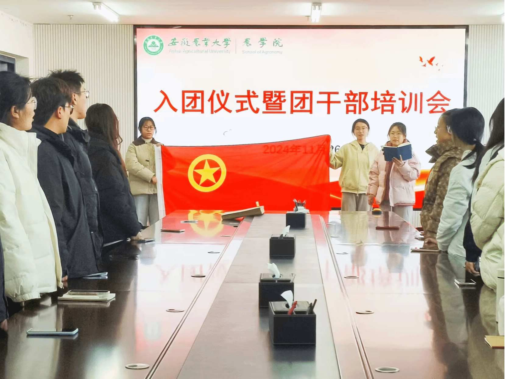 本网讯 为深入学习贯彻习近平总书记关于青年工作的重要指示精神,加强和改进团员队伍建设,推动学院共青团和青年工作高质量发展,11月26日下午,3044永利在朝阳楼208会议室开展了入团仪式暨团干部培训会,会议由陈甜甜主持,全体新发展团员与新生团干部参与会议。