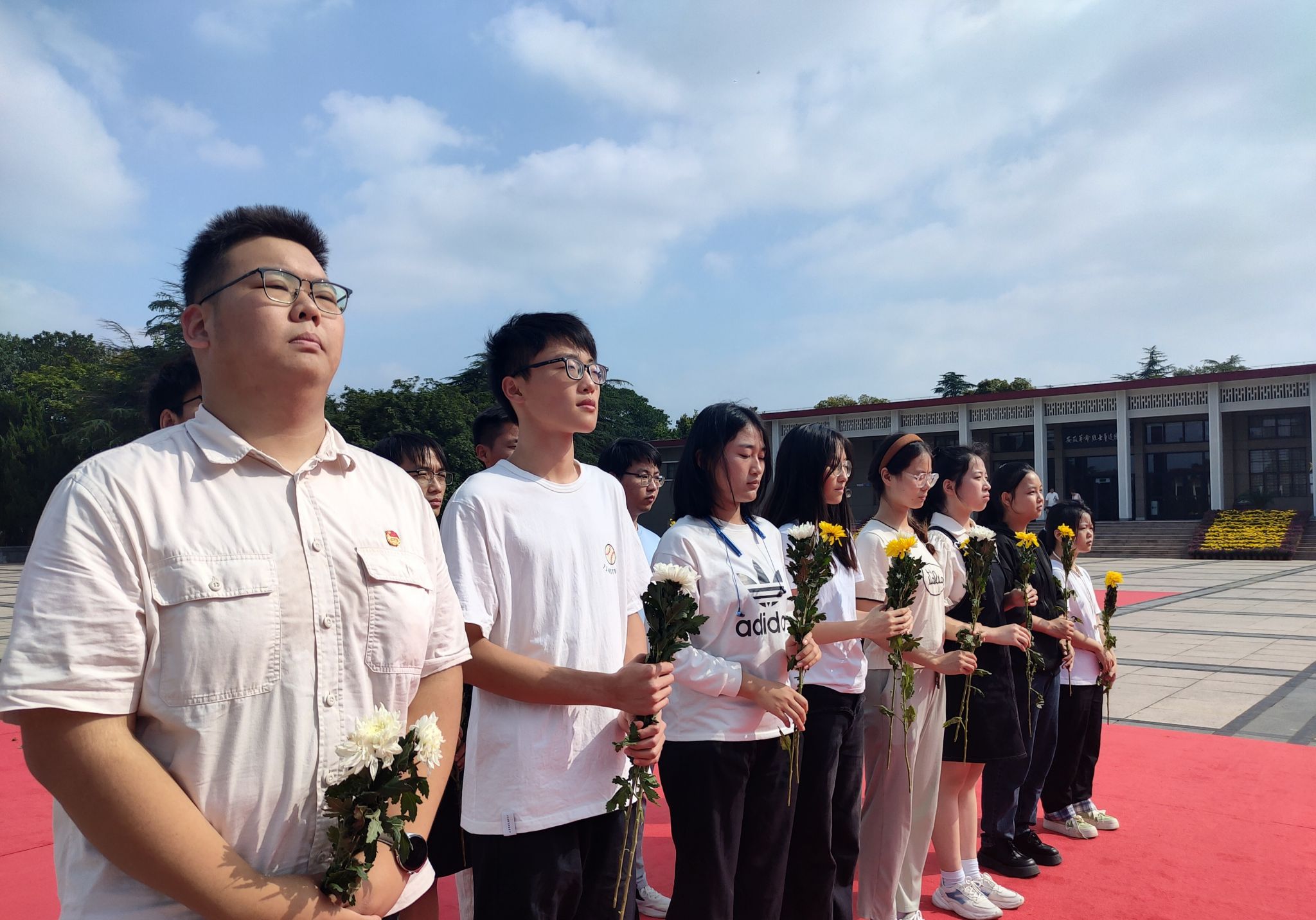 天地英雄气,千秋尚凛然。下午14时,陵园广场庄严肃穆。全场奏唱中华人民共和国国歌,随后,全体肃立,向烈士默哀,告慰革命先烈。默哀毕,同学们依次走到纪念碑前,献上手中鲜花并瞻仰纪念碑,献一束白菊,寄一缕哀思,表达了对革命先烈的崇高敬意,立志继承光荣革命传统、当好共产主义接班人。献花结束后,前往安徽革命烈士事迹陈列馆,学习革命先烈为建立社会主义新中国而献出青春和热血的事迹。