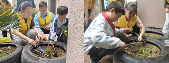 现场气氛活跃,志愿者们手把手指导小朋友们栽种方法,耐心科普农作物生理特性,并鼓励少先队员在实践中不断学习,不断进步。小朋友们学习了作物种植的技巧,在实践中上了一堂生动的劳动课。志愿者们在社区志愿服务活动中,展现了新时代农学学子知农爱农的担当,锤炼了强农兴农的本领。