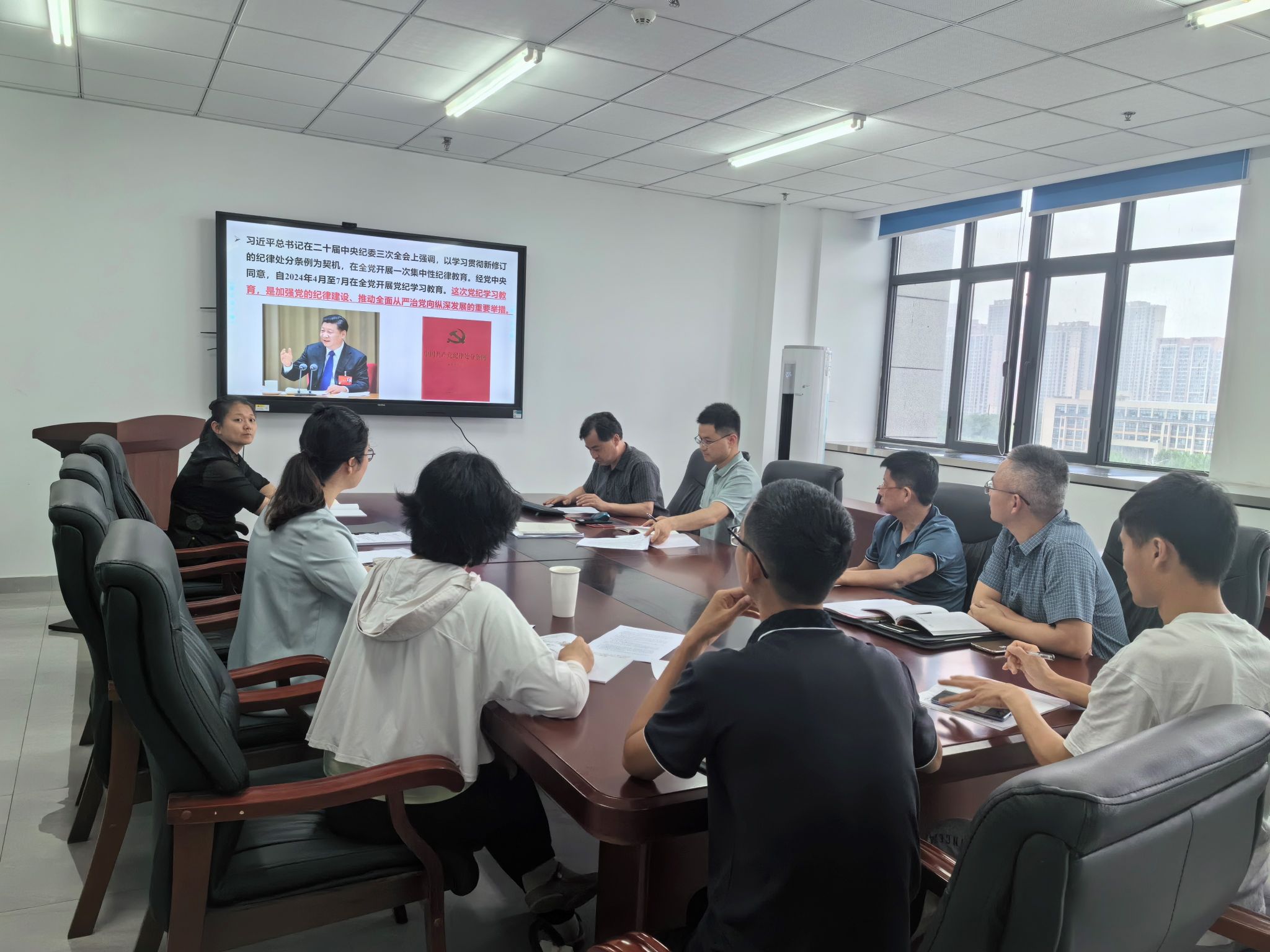 党课开始前,支部书记陈翔通过“微党课”的方式,深入剖析《中国共产党纪律处分条例》中的“生活纪律”,并对典型案例进行分析,强化了党纪学习教育的紧迫性和重要性。随后,各支委分别领学,同与会党员集中学习了《条例》第二编、第三编,并就其中与自身工作相关的内容进行讨论和交流,做到了读原著、学原文、悟原理。