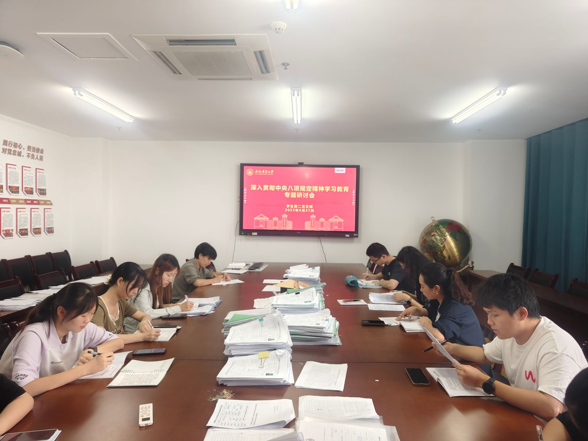 会议最后,集中观看了警示教育纪录片《永远吹冲锋号》,深入传达学习省委警示教育大会精神。中央八项规定是管党治党的长期铁律,作风建设必须常抓不懈。员工党员要在学业实践中树牢纪律意识、发挥表率作用,教职工党员需将作风建设贯穿员工培养、思政教育全过程,以零容忍态度纠治不正之风。(文:张琪悦 路欣洁 图:李华玮 初审:潘雨群 复审:柳洁 终审:洪志生)