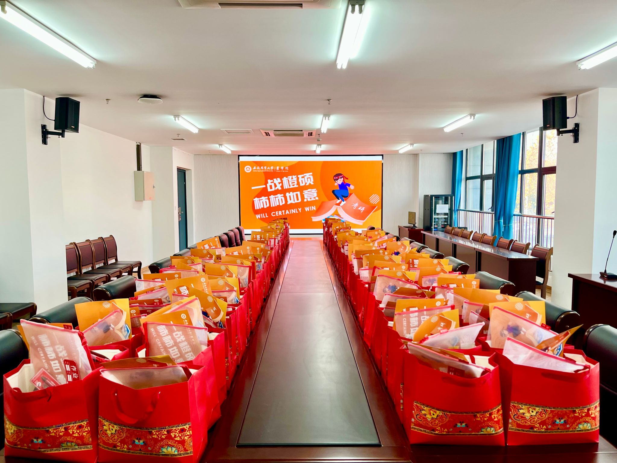 2023年12月20日,3044永利开展“一战‘橙’硕,‘柿柿’如意”考研暖心慰问活动,通过为每一位考研学子精心准备考研暖心大礼包--水果礼盒和文具袋,水果礼盒包含橙子、柿子。橙子寓意考生一战“橙”硕、柿子祝愿大家“柿柿”如意,孔庙祈福文具袋祝愿学子执笔乘风,考神附体,“芯”“橡”事成。毕业班辅导员们将一份份考研暖心大礼包送到了考研学子的手中,将温暖传递到每位考研学子的心里。(陈浩宇 周毅 范宇 一审:冯峰)