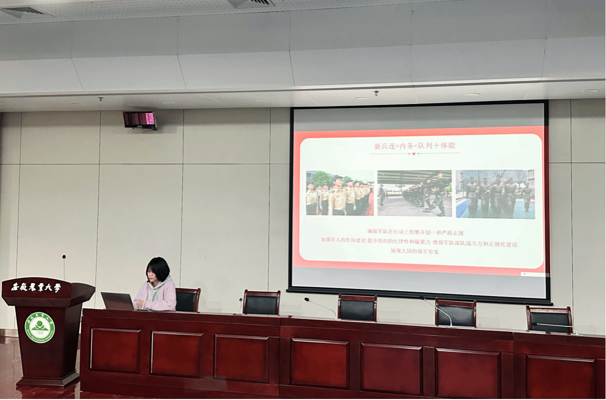 2021级食品质量与安全专业在校生,退伍军人代表、校国旗护卫队队长王咸青结合个人经历,为在场员工作了一场内容丰富的征兵政策宣讲。他从征兵条件、优惠政策、军旅生活以及退役安置等方面展开讲解,并结合亲身经历分享了投身军营的成长与收获。他鼓励同学们积极响应国家号召,将参军入伍作为人生发展的重要选择,为国防建设贡献青春力量。