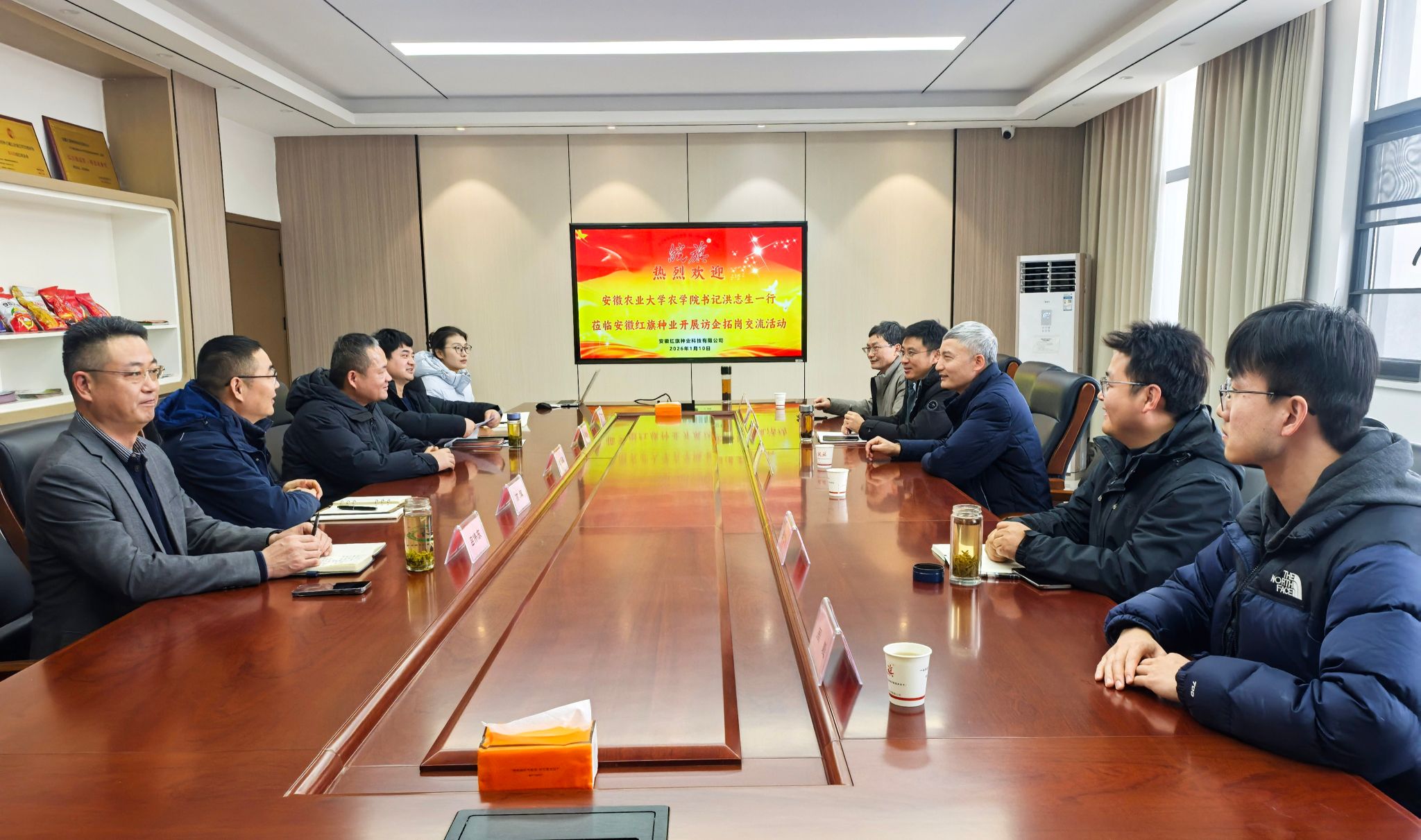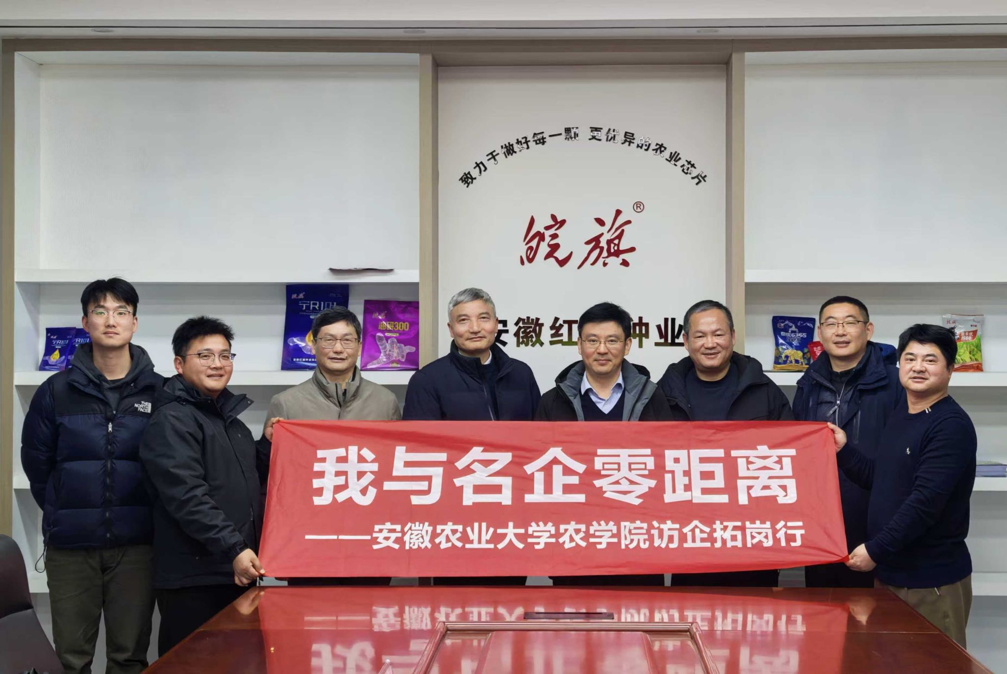 1月10日,由农公司党委书记洪志生、王晓波经理带队,3044永利师生一行前往安徽红旗种业科技有限公司,2004届农学专业员工、公司总经理贾长敬热情接待。